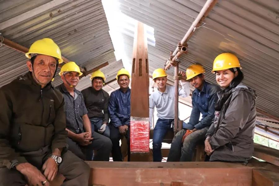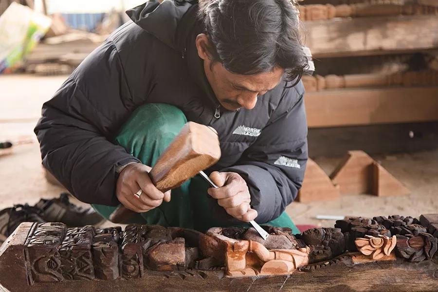 中国的援外文物修复人员是一支年轻的队伍,除几位老专家外,守工地的多数时候是几位年轻的女孩子,她们大都是建筑、考古等名校名专业毕业的博士和硕士,现场一线的修复工作促使她们成熟很快。小心翼翼地攀着逼仄的楼梯上到塔楼的平台,看见尼泊尔的工匠正在技术人员的指导下干着木活。负责现场管理的女孩子看上去满脸稚嫩,但谈起修复工作来却显得十分老道,言谈中我们了解到文物修复工作中所遵守的理念与方法。他们坚持文物保护的真实性、完整性原则,在修复工作中对现存木构件保存完好的进行清理后原位安装,木构件局部残缺或糟朽严重的做些修补再继续使用,而缺失的木构件则指导当地木匠按原形制、原材质、原做法进行补配,最大限度地保留了原建筑的历史信息及风貌。
