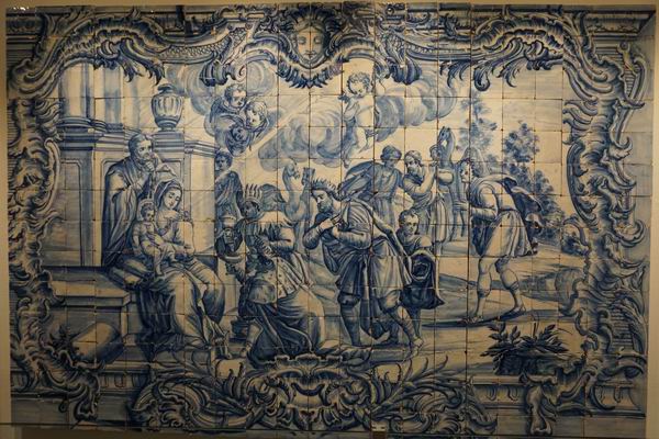 在展览中可以看到,描绘了国王私人徽章——浑天仪的一组瓷板画,其中的浑天仪既代表着宇宙,也是君权的象征。在曼努埃尔一世统治时期,葡萄牙人漂洋过海,远达东方,先后在1498年和1513年抵达印度和中国。瓦斯科·达·伽马(1469~1524年)开辟了到达印度的海上航路,并为国王带回了中国瓷器。这促使曼努埃尔一世国王从中国订购了更多瓷器,其中一些就饰有浑天仪的标志。此后,大量描绘葡萄牙贵族徽章及宗教题材的订制瓷器,在葡萄牙盛行。1560年之后,里斯本开始利用彩绘工艺制作瓷板。这一技法可以在瓷板表面实现快速绘色,因而扩展了这种艺术形式的表现能力。