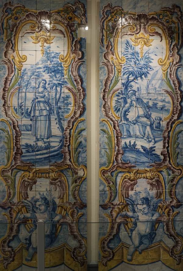 从18世纪中期开始,一种全新的国际风尚“洛可可”被葡萄牙瓷板画吸纳,呈现一种法式风情。1755年大地震后里斯本重建,推动了花纹组合瓷板画生产传统的恢复,墙壁装饰的样式从“洛可可”风格转变为“新古典主义”风格。