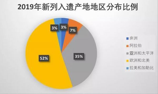 2019年新列入遗产地地区分布比例。 制图:魏青