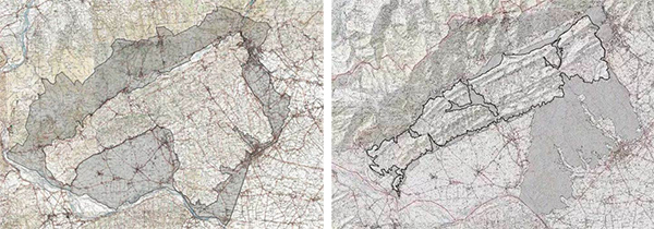 左图为2018年遗产地申报范围,右图为2019年修订后遗产地申报范围 来源:《普罗塞克山丘申遗文本》