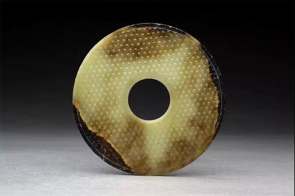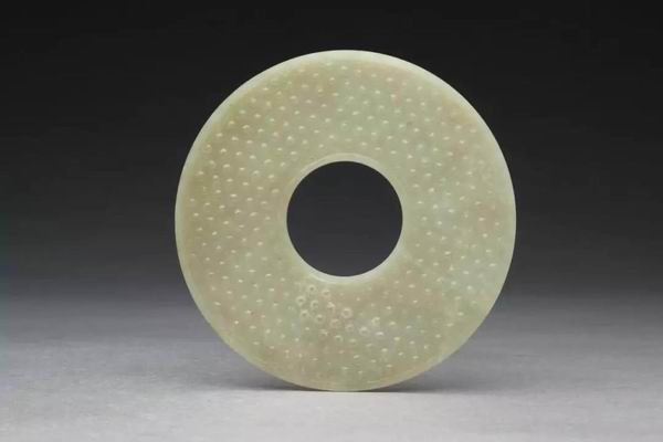 玉璧,始见于新石器时代,最早作为礼器出现。《周礼・春官・大宗伯》载:“以玉作六器,以礼天地四方。以苍璧礼天,以黄琮礼地,以青圭礼东方,以赤璋礼南方,以白琥礼西方,以玄璜礼北方。”六器是沟通神人的工具,也是诸侯盟会时的凭信。除此之外,玉璧可作为葬玉。