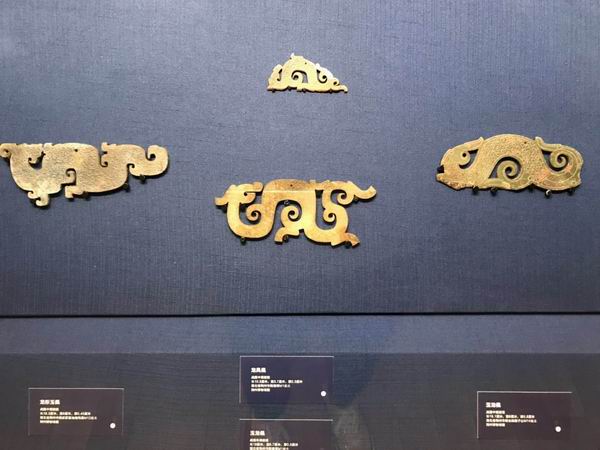 在纹饰图案上,前期使用阴线纹、隐起法刻琢的凤鸟纹、龙纹变得少见了。大量出现了用拉线雕刻、浮雕、镂雕琢磨出来的谷纹、云纹、蒲纹、竹节纹、扭丝纹、网纹、凤纹、螭纹等。