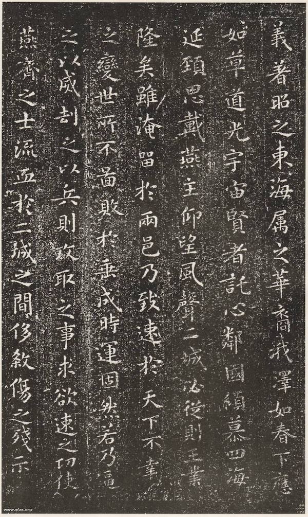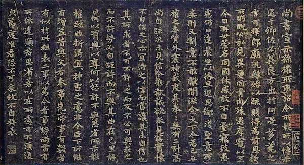 蔡邕是书家,也是学者,还是著名的文学家,擅长碑铭这种文体。东汉立碑颂德的风气极盛,许多名士的碑铭都是聘他撰文。蔡邕还做了一件轰动朝野的大事,熹平年间,他和几位大臣联名上书,要求订正儒家经典,刻立石经碑,得到汉灵帝的批准。刻成的石经碑,共四十六通,立于洛阳太学,后人称为《熹平石经》。这是中国历史上首次把儒家经典的标准文本刻在碑上,又是蔡邕等人书丹,当时“后儒晚学,咸取正焉”,“观视及摹写者,车乘日百余两,填塞街陌”(《后汉书》卷六十下《蔡邕传》及李贤注引《洛阳记》)。观石经,既可看到经典的正规文本,亦可摹写标准的隶书。《熹平石经》并非蔡邕一人书丹,他的书名大,以至于后人只说蔡邕书碑。