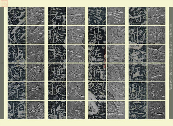王献之 小楷《洛神赋十三行》碑文与拓本对照图
