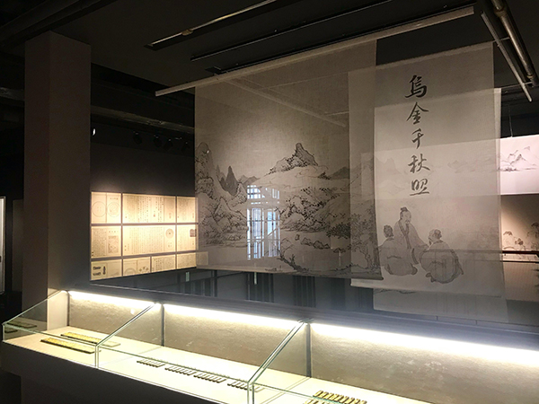 一楼一侧的展厅里陈列着由上海墨厂根据乾隆墨模翻制的御园图集锦墨。