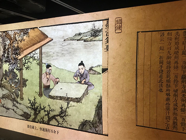 团队成员参照《墨法集要》中对油烟墨制作的过程,写了剧本和分镜头,从家里、单位、小区中搜罗12道制墨工序所需的道具,并用制图软件和打印相机进行了加工处理。成员们亲自上阵拍摄每一个动作,在多媒体总监左焕琨的指导下,尽可能地还原了古籍中的动作细节,从而让经过后期制作的动画短片更为真实可信。