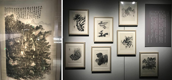 此次展览中,还有两项特别展示,为本次墨展加重了含金量。主办方借来了浙江省博物馆藏黄宾虹晚年山水画代表作《论天地人图》,一旁还配有他主张的“五笔七墨”法论述以及由当代画家绘制的《笔法图》《墨法图》,展现墨在书法和国画中的表现力和重要性。