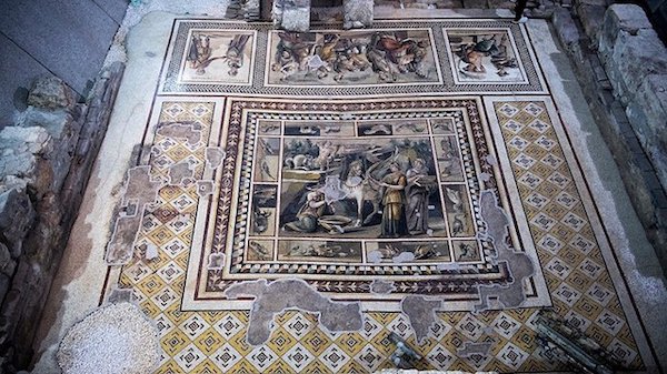2009年,希尔顿酒店集团决定在土耳其安塔基亚(Antakya)市中心的一块空地上新建一座酒店,以接待当地不断增长的旅游客流。原计划酒店将有400间房间,投资超过3500万美元。然而,当酒店刚刚破土动工,挖到地下5.5米深时,了不得的事发生了。人们竟然在此发现了一块超过一千平方米的马赛克镶嵌地板,大概是考古发现的面积最大的马赛克地板了。并且从马赛克镶嵌的风格来看,从希腊化时期一直到奥斯曼土耳其时期,它竟然包含了前后13个文明的作品,最早可以追溯到公元6世纪。人们继续挖掘,又在地下发现了地基、墙体、碎石铺成的街道……这层层叠叠的古代文明,在地下保存了千年之久。