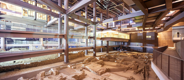 设计师们想到了在酒店中创造一个博物馆空间的主意。他们将遗址用透明的玻璃罩起,将此当作酒店的中庭。听上去简单,但整个施工过程需要特别小心。为了不破坏遗址,酒店的所有房间都用巨型钢柱支撑起来,距离地面一段距离,悬在玻璃保护罩上方,如同古代的干栏式建筑。钢柱的选址当然也要避开所有遗址所在的地方:马赛克地板、断断续续的墙、一千年前的庭院,等等。而酒店的房间数量,也从原定的400间,降到了199间。