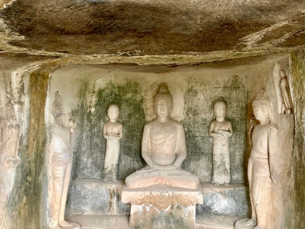 之所以也称“云窟”,因山上有开凿于北周至隋唐时期(557年-907年)自西向东石窟造像五处,石佛300多尊,梁思成誉其“雕工至为成熟,可称随朝最精作品”。就我所见,五窟佛像整体损毁较严重,从两旁胁侍菩萨的身形来看,主尊佛若尚在,更当长身玉立。