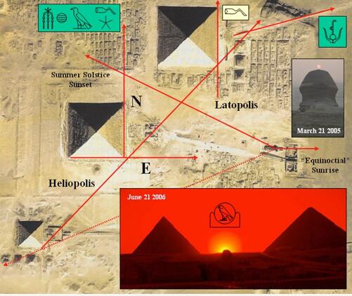 埃及吉萨,世界遗产吉萨高地建筑(尤其是斯芬克斯和金字塔)对应天体和地理关系图
