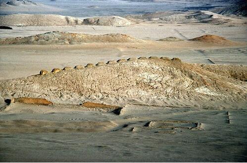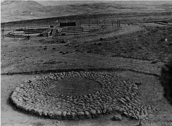 Chankillo祭祀遗址, 秘鲁,上图为观测台,下图为13个对应天体运行的塔,350-100BC