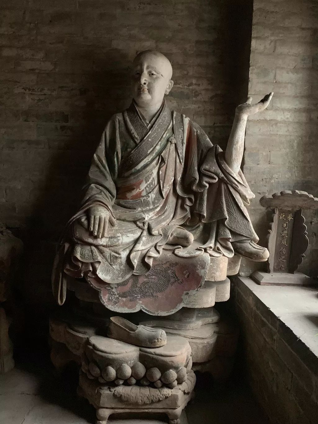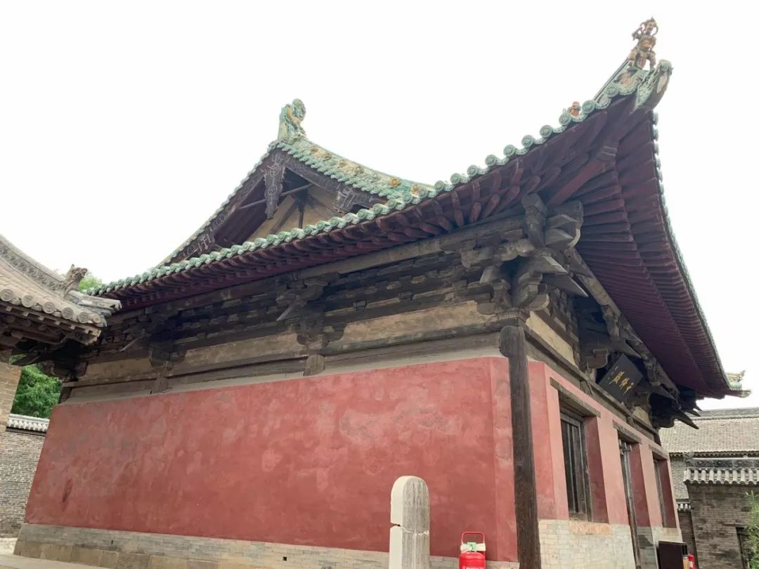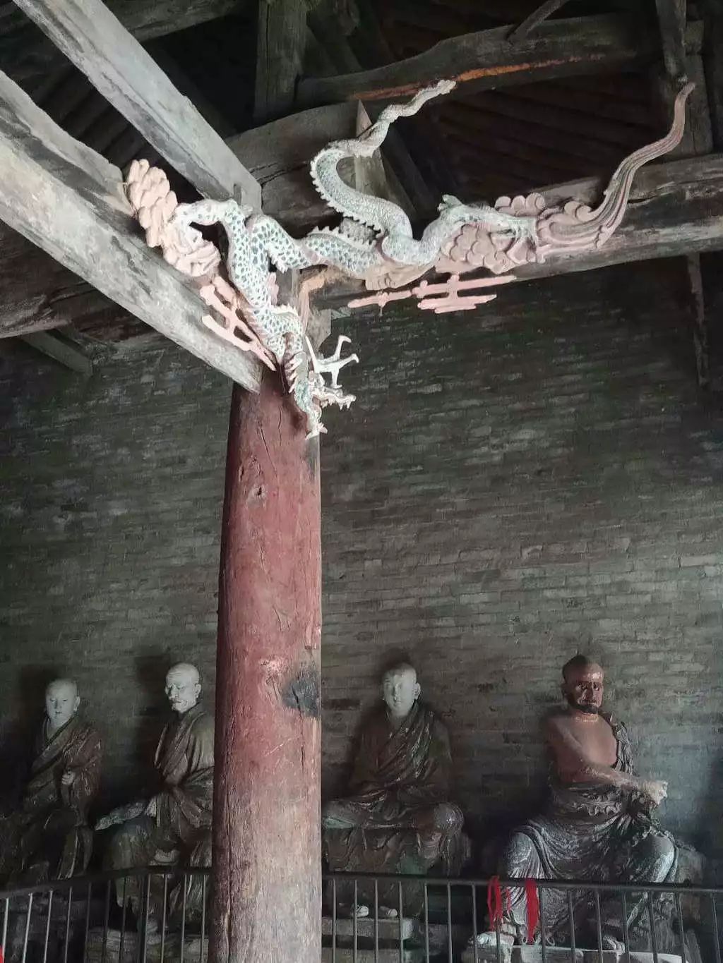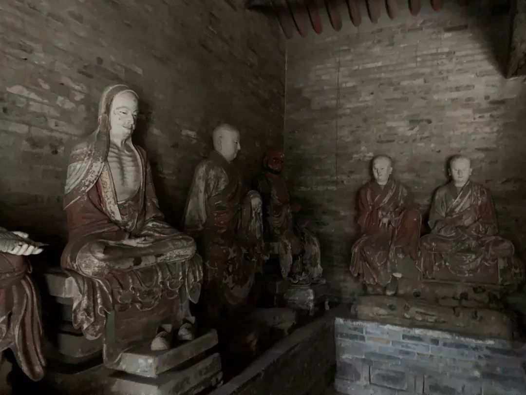 寺后山峰环耸如屏,寺前松柏簇拥。山巅立有明代中州范志完所书石碑。寺分前后两院,后院中有天王殿,四天王横眉怒目,威武壮观。左右卧佛殿与三大士殿,西北隅为地藏殿,千佛殿居后院正北,梁架斗拱均属宋制。殿内有佛、菩萨像三尊,西壁悬塑人物局部残坏。西配殿内北宋元丰二年(1079)塑大力士及十八罗汉像,西垛殿内明初塑地藏菩萨与十王像,塑造技艺甚佳。
