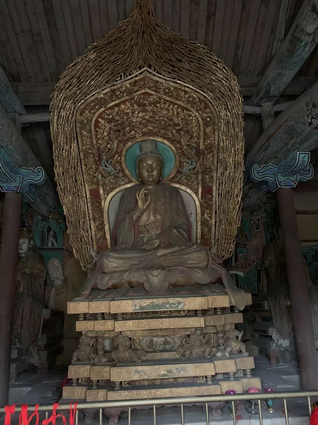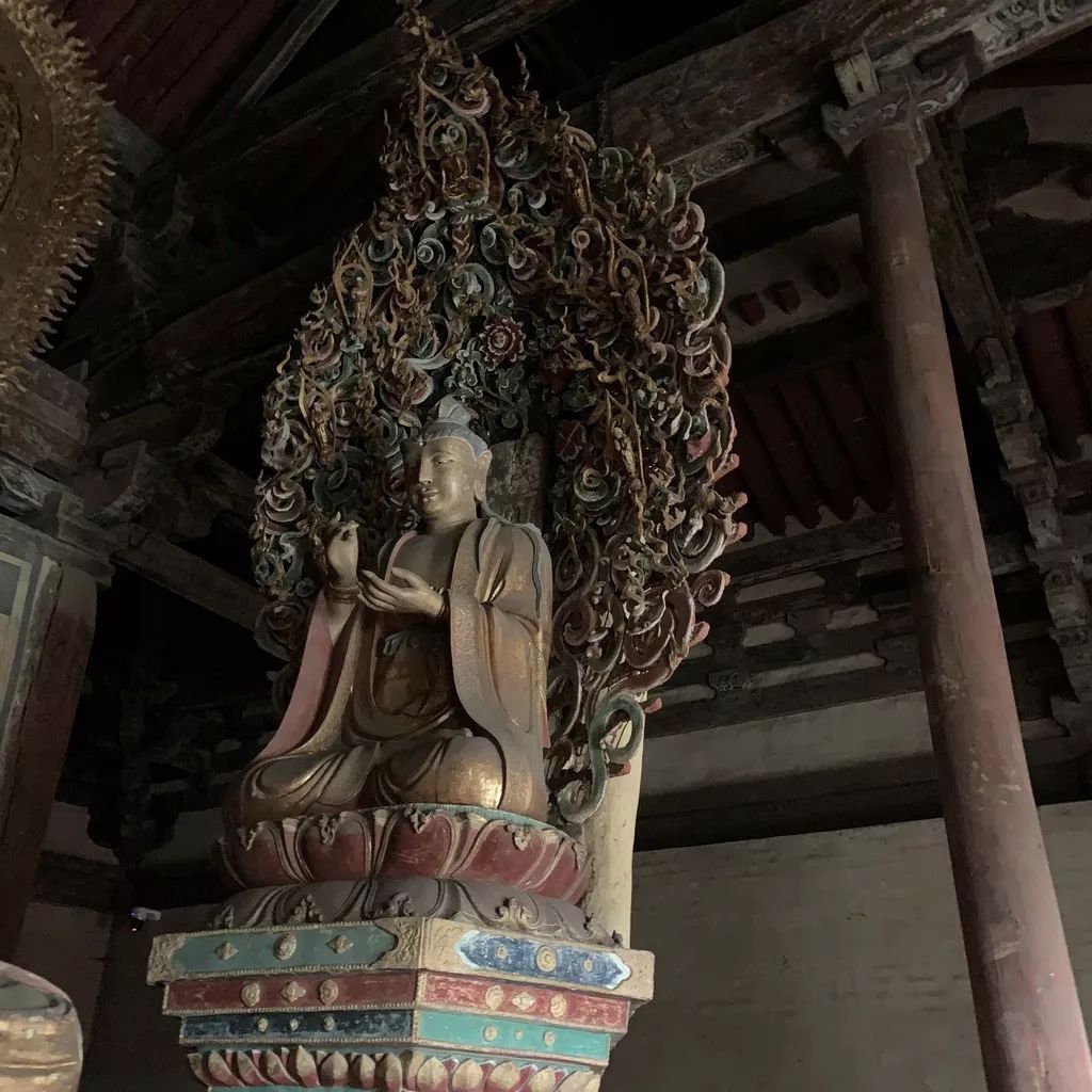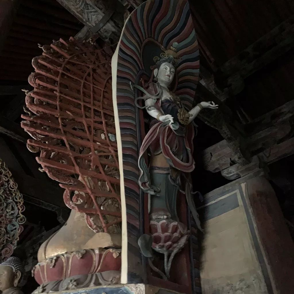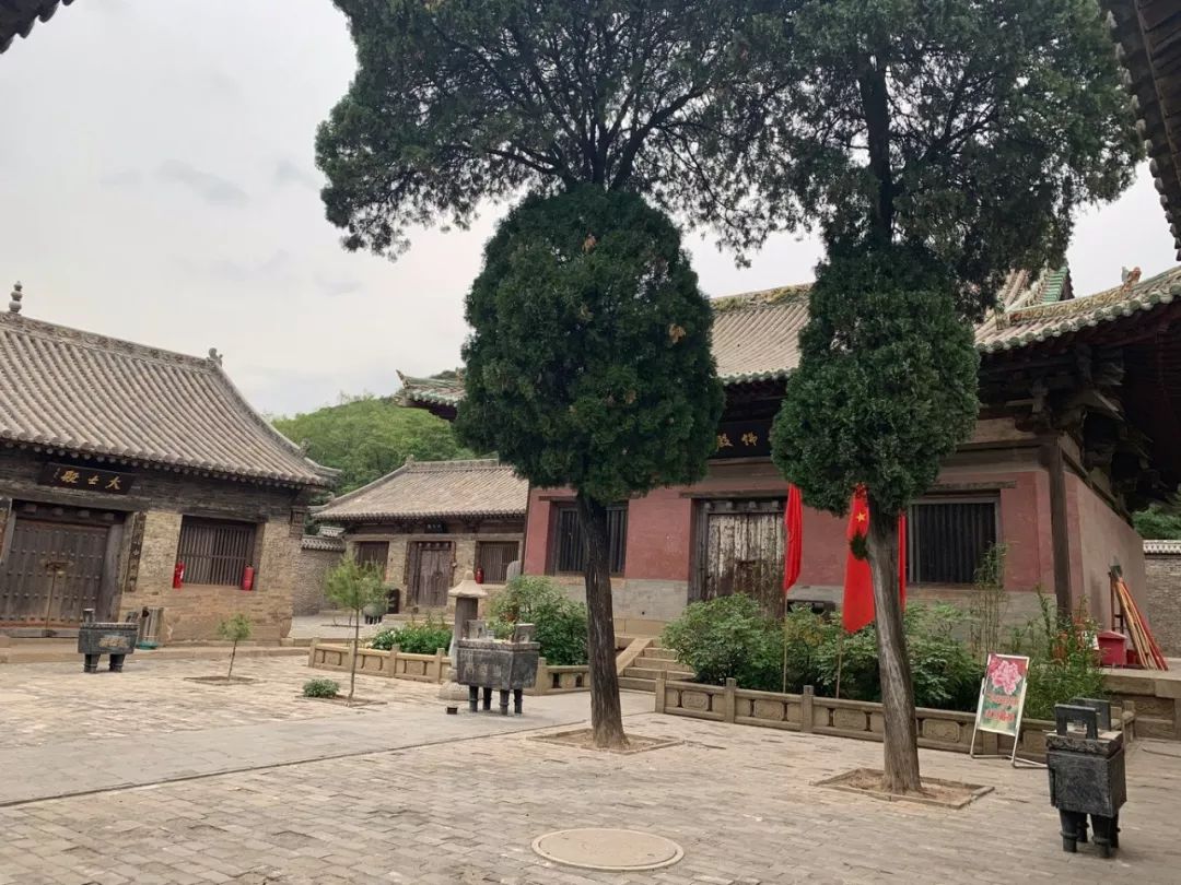 整个寺院,彩塑华贵而庄重,建筑古雅而幽静,院内正殿阶前甬道两旁,各有一丛千年牡丹花。如果四月到此游览,还会欣赏到鲜艳盛开、芳香四溢的宋代牡丹。