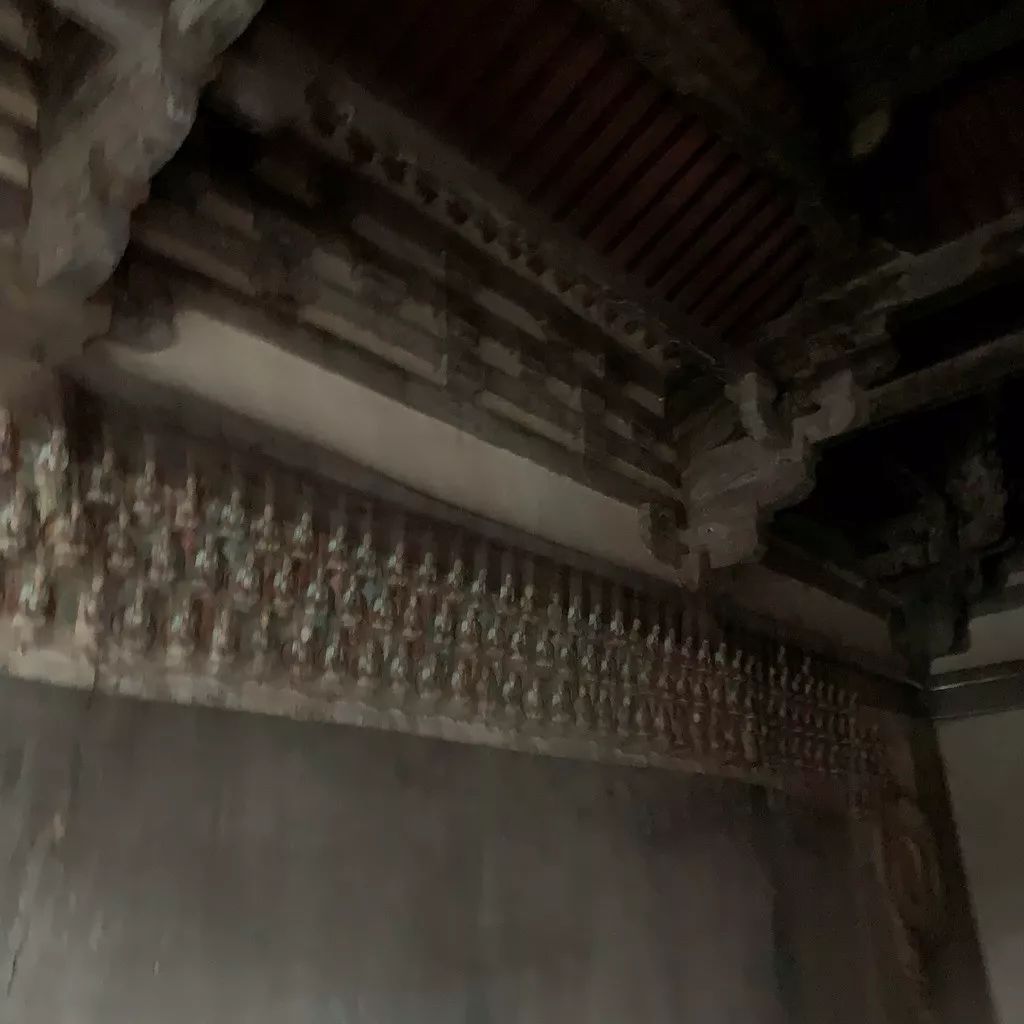 千佛殿梁架,既无虚设构件,亦无重复配置,技巧娴熟,手法洗练,负重均衡适度,结构合理有力,是我国宋代小型殿宇中具有代表性的遗作。殿顶琉璃色彩艳丽,造型生动,窗棂式样苍古,仍为宋人旧作。殿内佛坛束腰须弥式,束腰剔地突起雕花草纹,间柱上雕兽面,乃宋制无疑。坛上一佛二菩萨及背面侧座观音像,虽经后人重装,面相、衣饰、手法以及华丽无比的泥塑背光为明代雕塑,但彩塑的布列位置,躯体造型,头上发髻等,仍保留了宋代风格。