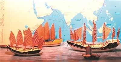 泉州海交馆内的古船模型及古代航海路线图(陈起拓摄)