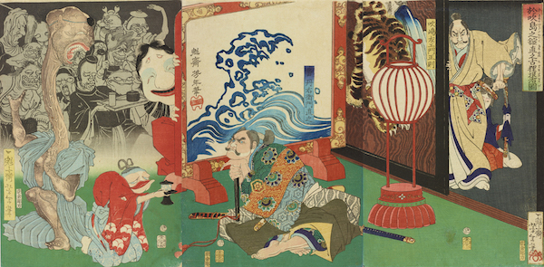 中古时代诞生的妖怪在江户时期大幅增殖,在江户街头昂首阔步。那些妖怪衍生出新的故事并被图鉴化。在浮世绘中,妖怪有时会惊吓或攻击人类,他们的外表是可怕的,但有时却也幽默的,人类以坚定的态度面对妖怪的存在,他们也成为与人类共处的世界居民。