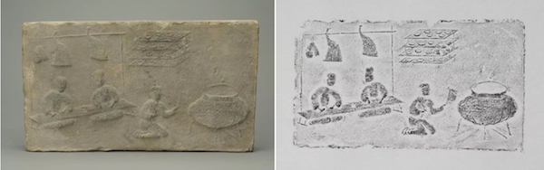 在文献材料相对稀缺、可信度相对有限的背景下,考古出土的画像石、画像砖等无疑是弥足珍贵的,为我们提供了宝贵的材料。如诸城凉台东汉孙琮墓出土的表现庖厨题材的汉画像石构图复杂,其内容涉及汲水、椎牛等多个题材。