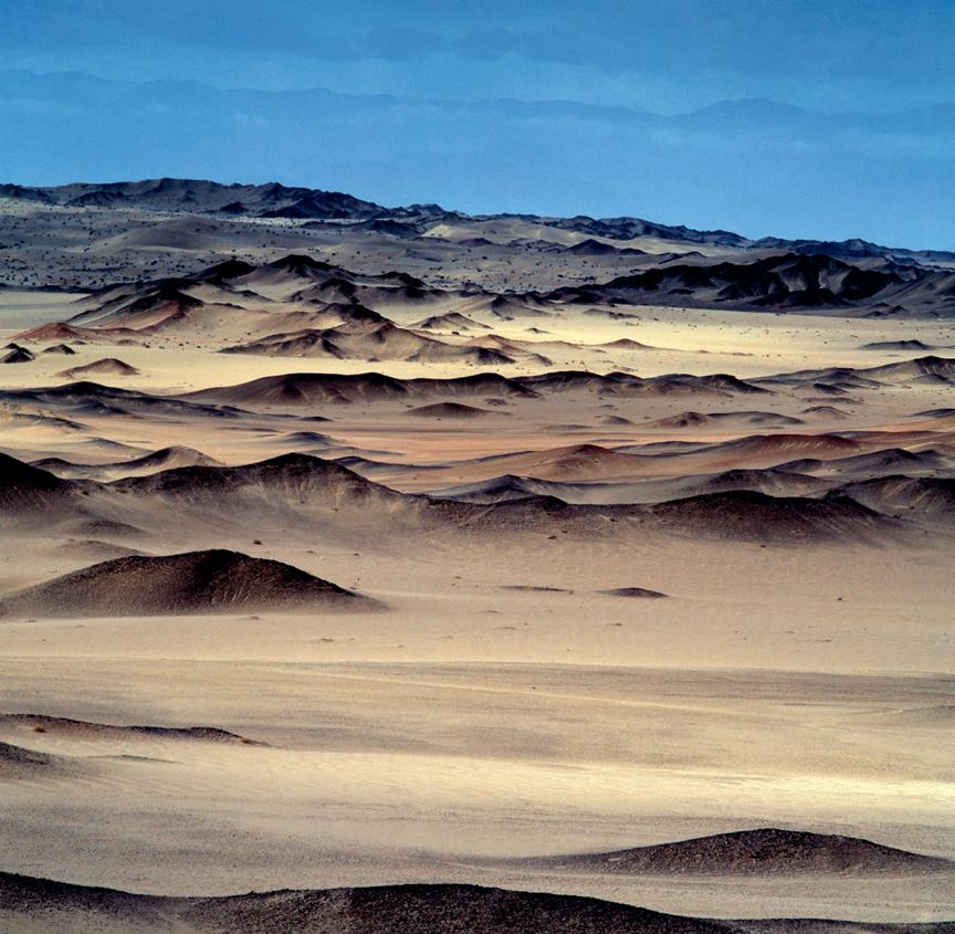 细粒物质随着风漫游,也在这个过程中与地面碰撞摩擦,进行双向的破坏分解。当条件改变使得风力减弱时,其中相对粗粒的便堆积下来,又反向去阻碍风,逐渐越集越多,在盛行风长期的作用下,最终聚起一片片广阔的沙漠。