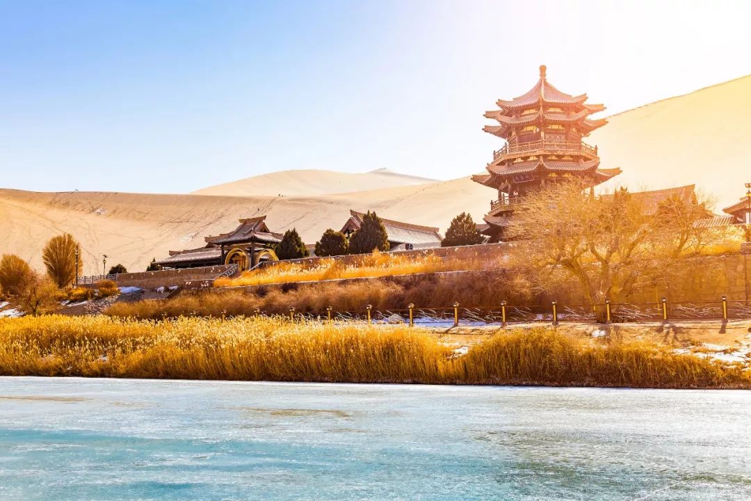 ▲ 历史张开双臂。图为月牙泉边的听雷轩。图/视觉中国