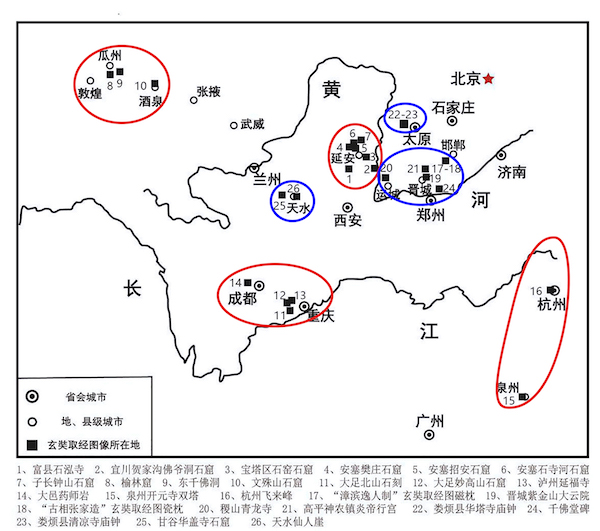 图一 玄奘取经图像区域分布图(张利明制)