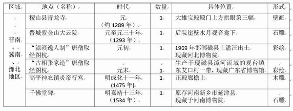 表四 晋南、冀南和豫北地区玄奘取经图像汇总表