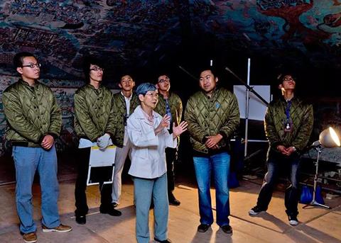 2009年8月,樊锦诗在莫高窟第85窟指导敦煌壁画数字化工作。