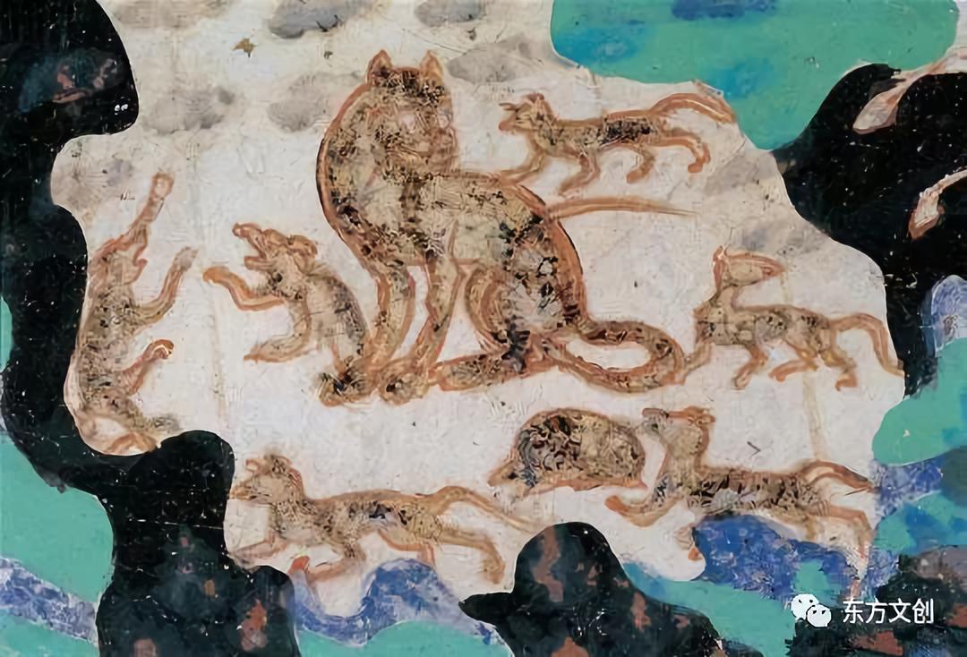 莫高窟301窟中,虎妈妈端坐在地,环视围绕在自己身边的七只虎宝宝。它们游戏正酣——有的来回踱步、有的东张西望、有的玩闹戏耍,看着自己的孩子渐渐长大,妈妈露出欣慰笑容。不得不说,动物画中的母子情深,无疑是敦煌壁画中的一抹温情的“暖色调”。