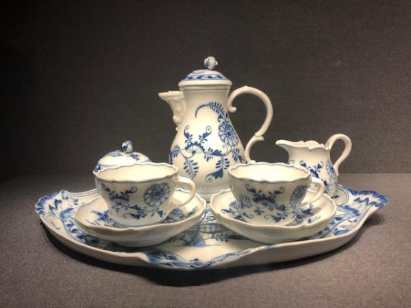 《蓝洋葱双人用咖啡用具》德国杜塞尔多夫黑提恩斯—德国陶瓷博物馆藏
