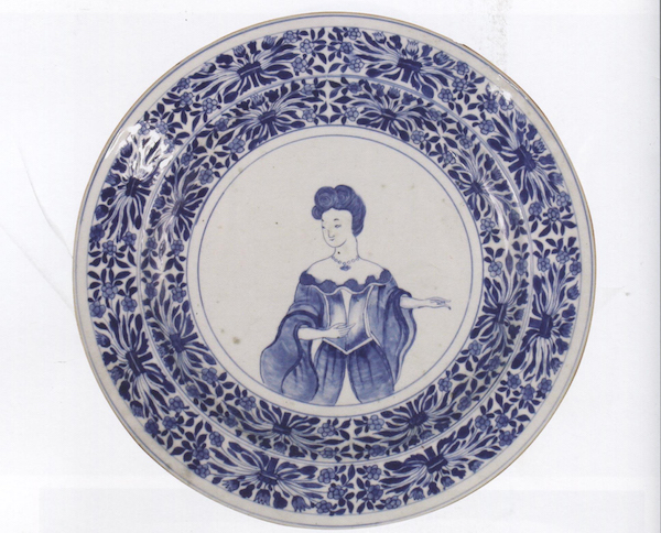 青花仕女盘,清乾隆(1736-1795) 江西省博物馆藏