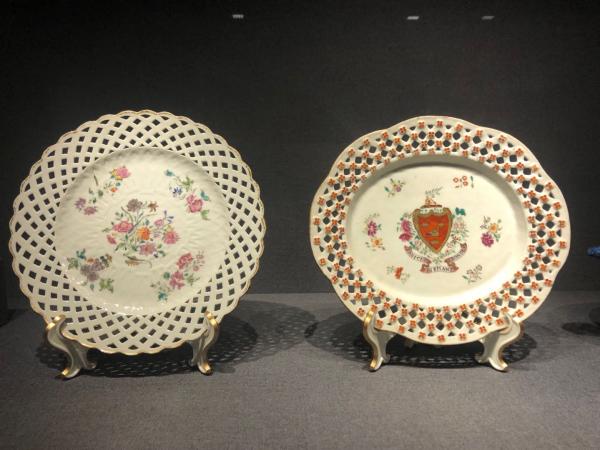 广彩折枝花卉纹镂雕瓷水果盘,清乾隆(1736-1795) 广州博物馆藏