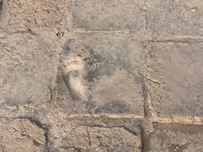 庙塔西南正门前有一座大型的日晷,一旁的地面上还有一只三千年前孩童的脚印,引起了观者的好奇,纷纷对其猜测不已。