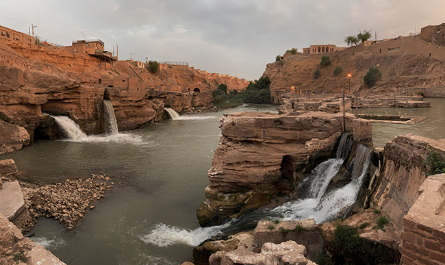 第三处是舒什塔尔水利工程(Shushatar)。舒什塔尔水利工程是萨珊时期的一个综合的水利灌溉系统。公元3世纪,此水利工程由在埃德萨战役中战败的罗马劳工筑造,是伊朗第一座罗马式拱桥建筑。