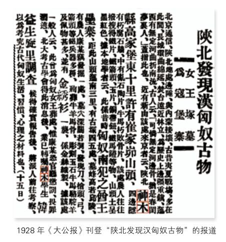 1928 年 1 月 4 日的天津《大公报》刊登过一则“陕北发现汉匈奴古物”的报道,此中记述,似有与石峁遗址相关之处,报道主要内容如下 :