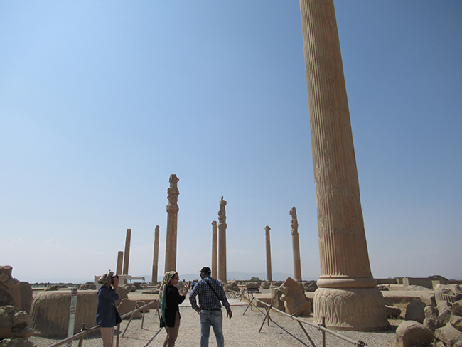波斯波利斯,在古波斯语中意为“波斯之都”。它建于公元前515年,是波斯帝国大流士一世即位以后,为了纪念阿契美尼德王朝而下令建造的第五座都城。它是波斯帝国进行重要庆典仪式和接见外国使节以及国王生活居住的地方。先前参观的贝希斯敦铭文记录了大流士一世的文治武功,打败马其顿,确定帝国行政制度。当政权基础稳定之后,大流士一世建造了新都波斯波利斯,波斯波利斯真实反映了波斯帝国的财富和权力。
