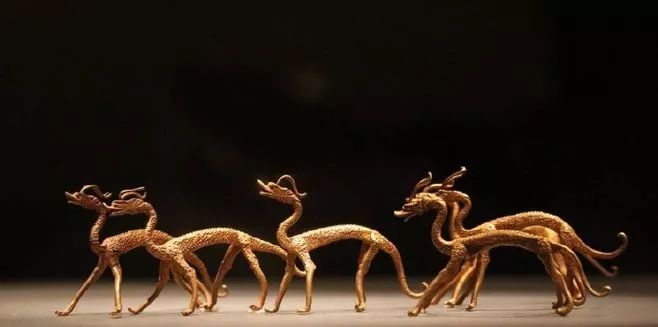 通常人们眼中龙都是气势磅礴的这组金龙却小巧玲珑,非常可爱,这组小龙极有可能是投龙祭祀仪式中所用的法器。