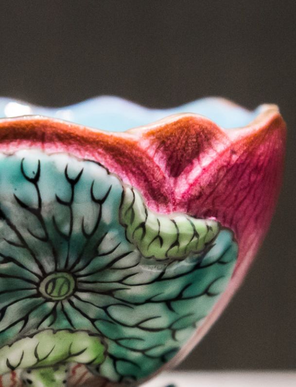 苏州博物馆的这件“粉彩绿里花形盃”,很好的将梦里水乡的清灵婉约以釉色渲染。