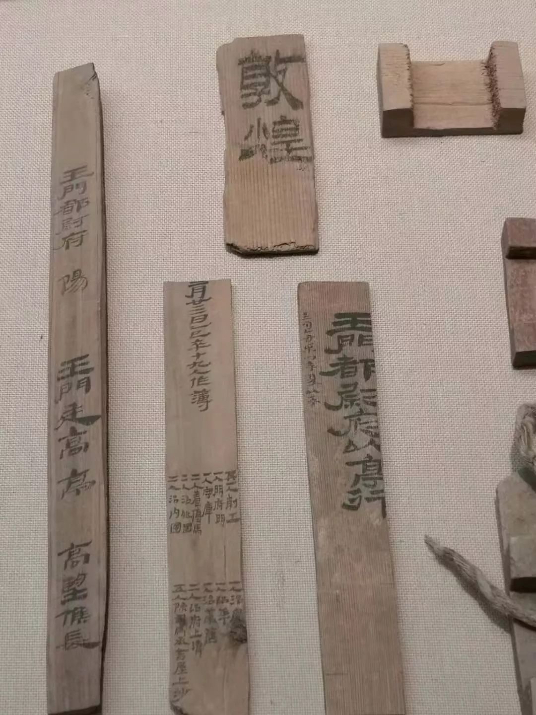 敦煌博物馆藏玉门关遗址出土的汉简,可以看到汉简上写着“玉门都尉府”的字样。