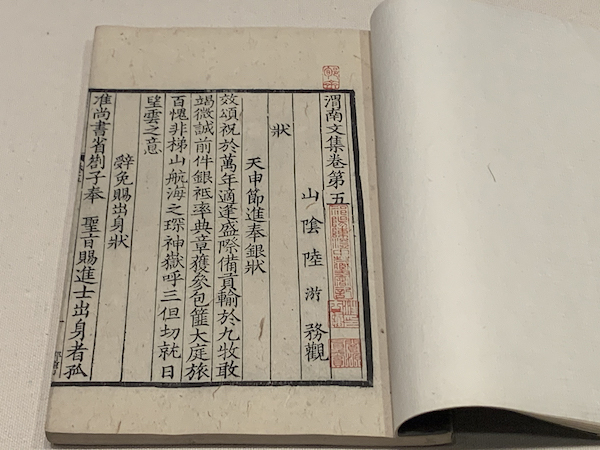 文集由陆游的儿子陆子遹编定,嘉定十三年(1220)刊刻于濛阳学宫。是本曾经黄丕烈、汪士钟、陈清华、徐伯郊等递藏。
