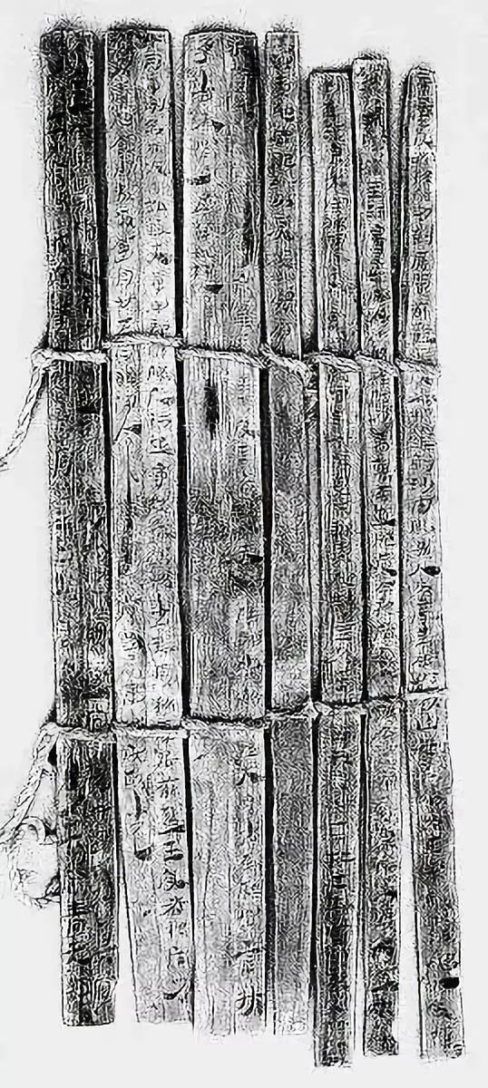 在实际使用中,“牍”毕竟过于宽大,多有不便,在书写较长的文章时,“简”更能发挥用武之地。这些简片按顺序编号、排齐之后,再用绳子、丝线或牛皮条编串起来,就成为了“策”或者“册”。