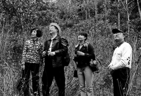 2007年,蒋廷瑜(左二)和彭书琳(左一)在大新县考察巷口崖洞葬。 (本文配图均由作者提供)