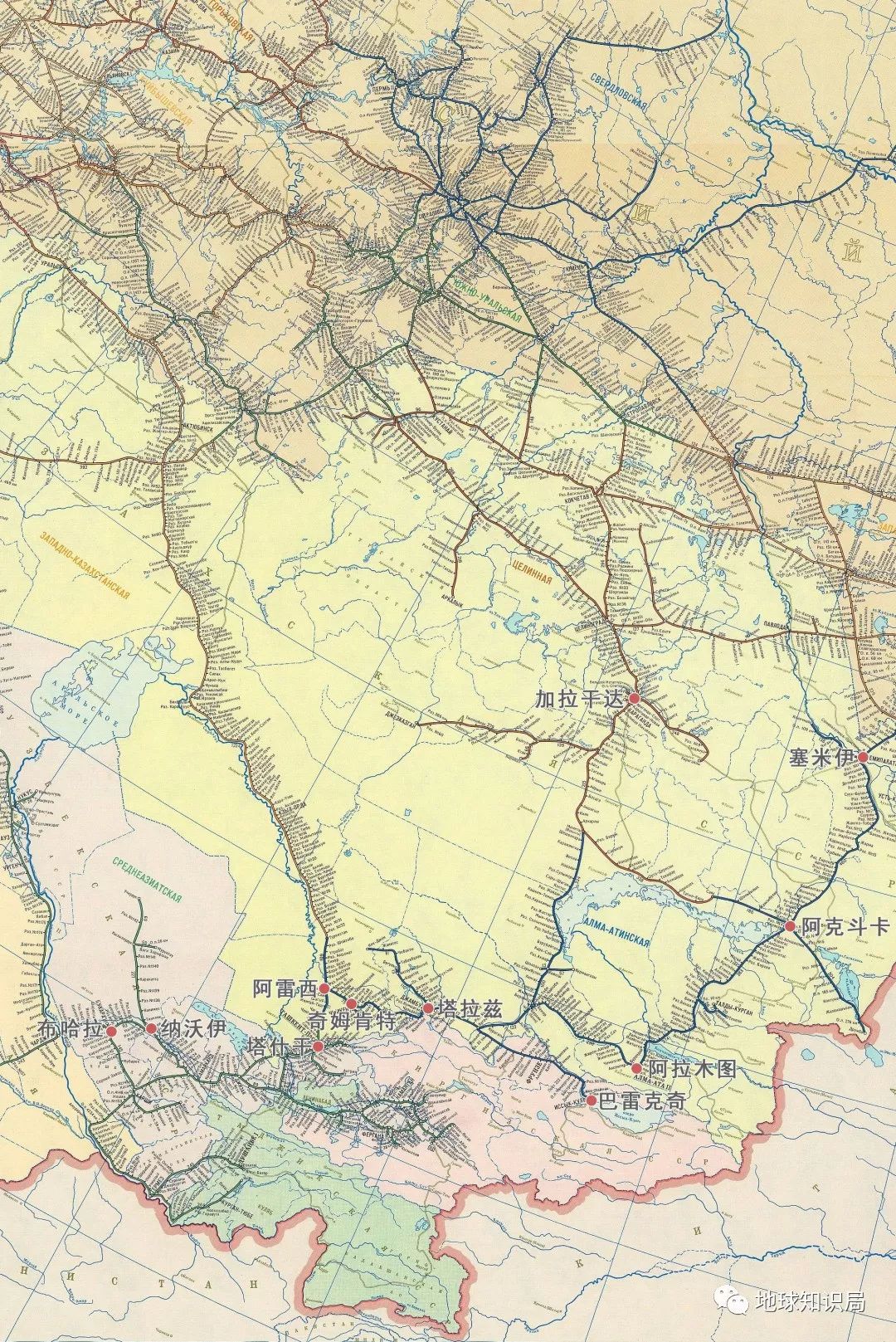 但中亚的铁路系统还是建得比较充分,中亚国家现在仍在使用这套线路