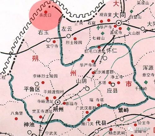 汉代大将李广、卫青、霍去病也曾从这里挺进大漠,驰骋疆场,最终封狼居胥,百代流芳。汉代苏武持节从杀虎口出使匈奴,自知一路凶险,前程未卜。王昭君出塞途卧羊山顿生悲痛之心,马蹄踌躇不前,留下“立马皆不发,盘石成蹄窟”的传说。隋大业三年(公元607年),“发丁男百余筑长城,西距榆林,东至紫河(即今右玉境内的苍头河),一旬而罢。”炀帝作《幸北塞》:“鹿塞鸿旌驻,龙庭翠辇回。毡帐望风举,穹庐向日开。呼韩稽颡至,屠耆接踵来。索辫擎膻肉,韦鞴献酩杯。何如汉天子,空上单于台。”。唐贞观四年(公元630年),李靖领兵从杀虎口出塞,消灭突厥20余万众。为了庆祝这一大捷,唐太宗李世民写下了《饮马长城窟》。