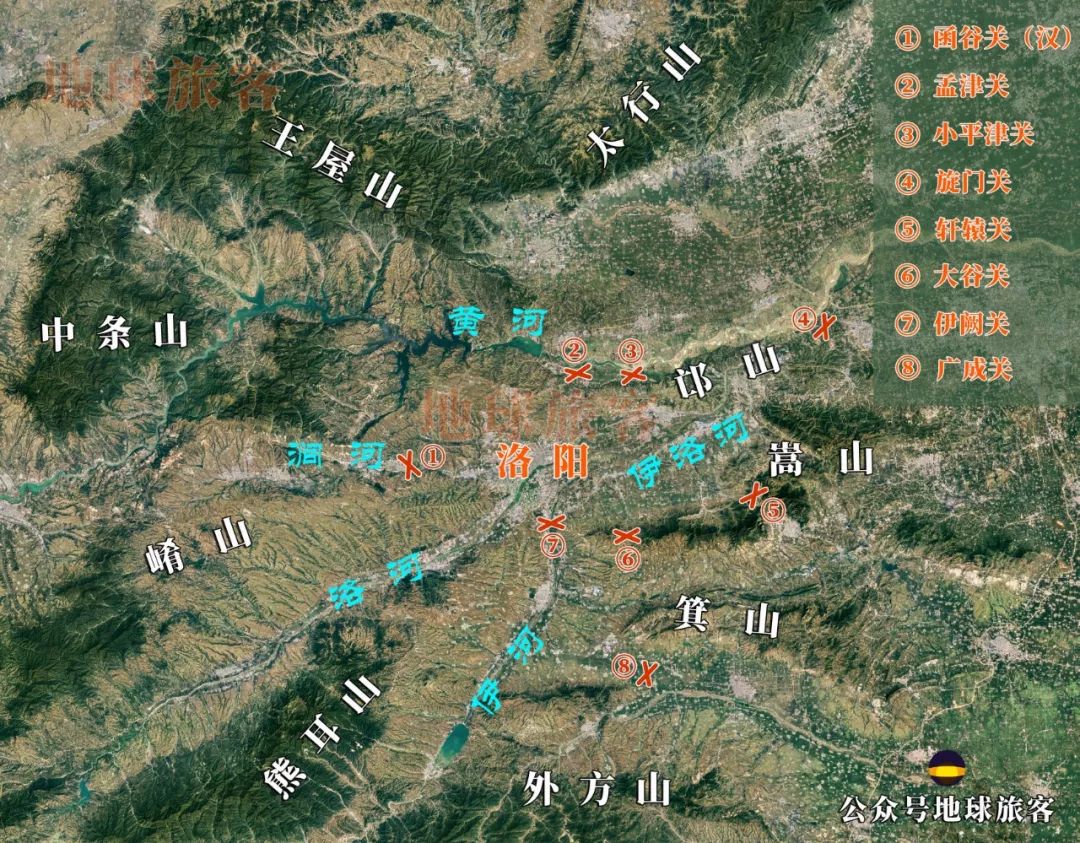 ▲洛阳四周雄关遍布,其中以东汉灵帝所置的“八关都尉”最为有名。这八座关口分别是扼崤函之险的函谷关、踞嵩山北麓的旋门关、守黄河渡口的孟津关和小平津关以及控制南下通道的轩辕关、大谷关、伊阙关(龙门)和广成关。