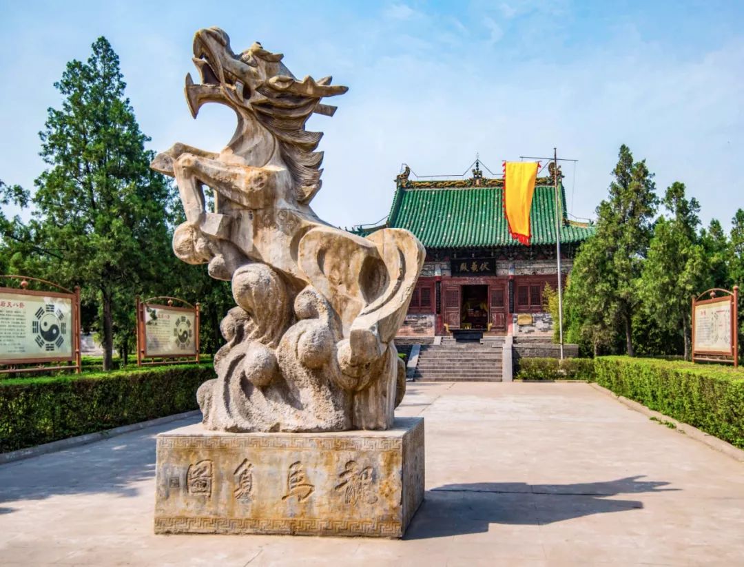 传说上古伏羲时,洛阳东北孟津县境内的黄河里浮出一条龙马,背负"河图"献给伏羲。但河图不是黄河图,而是星河图,伏羲据此推演出了八卦,并成为《周易》的起源。
