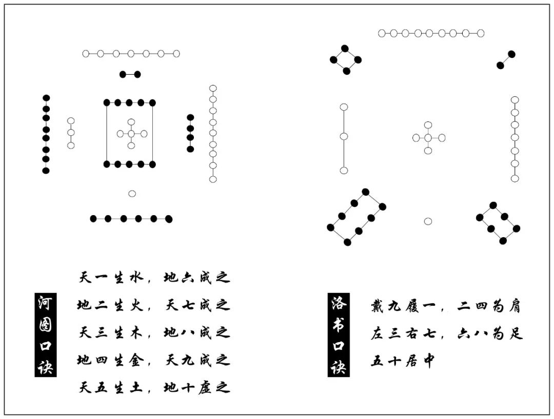 河图洛书中隐藏的数学规律还有很多,不再一一列举。其实,真正令人惊讶的不是它们所展现出来的数学之美,而是在那个鸿蒙初开的混沌岁月,人们甚至还没能造出裤子,就光着膀子露着腚用数圆点的方式找出了大自然隐秘的内涵。
