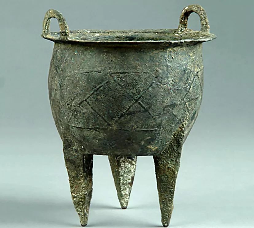 ▲夏代方格纹铜鼎,出土于洛阳偃师二里头遗址,距今3700年左右,是迄今我国已知的最早的青铜鼎。