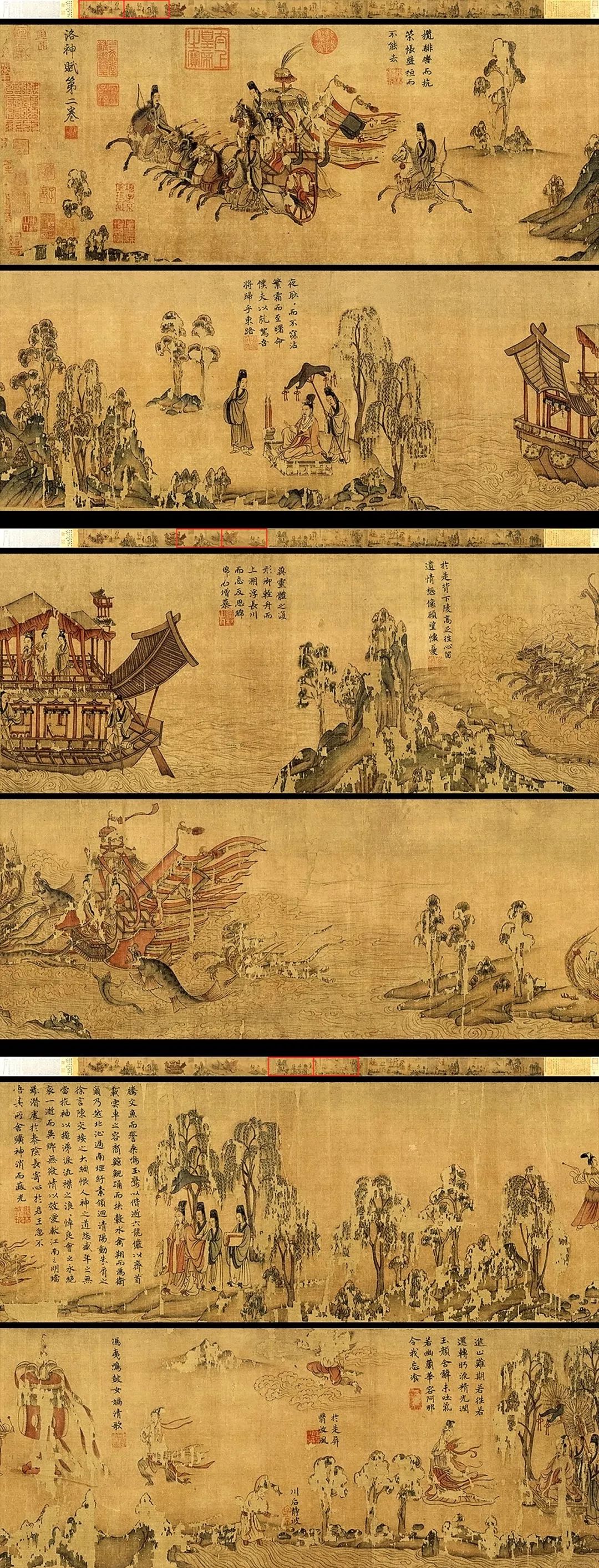 后来,东晋的顾恺之将《洛神赋》绘成了一幅连环画,可惜原作已遗失,宋人的摹本流传到今天成为中国十大传世名画之一。