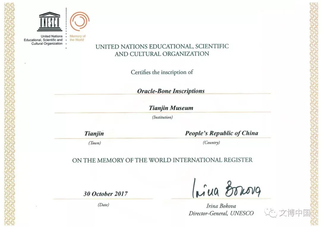 同样在2017年,包括天津博物馆在内的国内11家甲骨收藏单位联合申遗成功,甲骨文被联合国教科文组织列入《世界记忆遗产名录》。天津博物馆凭借馆藏的1700余片珍贵甲骨,为申报的成功贡献了自己的力量。